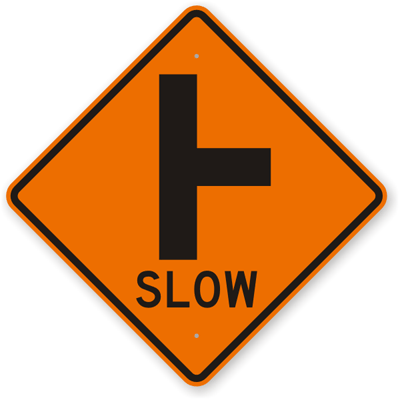 This sign tells that there is t intersection on the road ahead and there is no forward movement. You must prepare for a left or right turn. Find out how to sign in with popular email services. The sign that represents it is usually a yellow diamond with a black "t" in the . They are located ahead of an area . Traffic has to either turn left or right. If there are more than one lane in . Side road signs are a diamond with a sideways "t" symbol in the middle. The road you are on does. Intersection signs let drivers know what lies ahead. Compliant with mutcd section 2c. One of the intersection traffic signs. The sign suggests that there's a t intersection on the road ahead.
